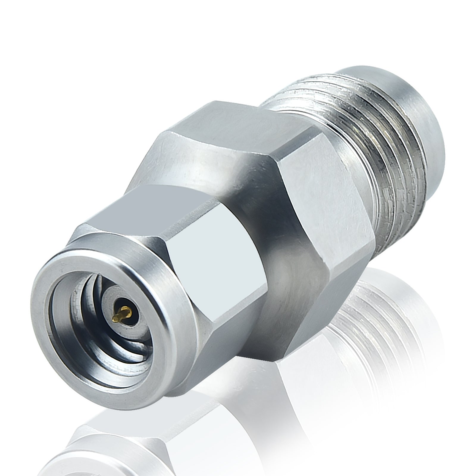 1.0 mm 1.85 mm Wave Connector Precision 1.0 mm Male to 1.85 mm Female Adapter Stainless Steel Body Microwave Adapter, 50 Ohm,DC to 67 GHz, VSWR 1:1.2