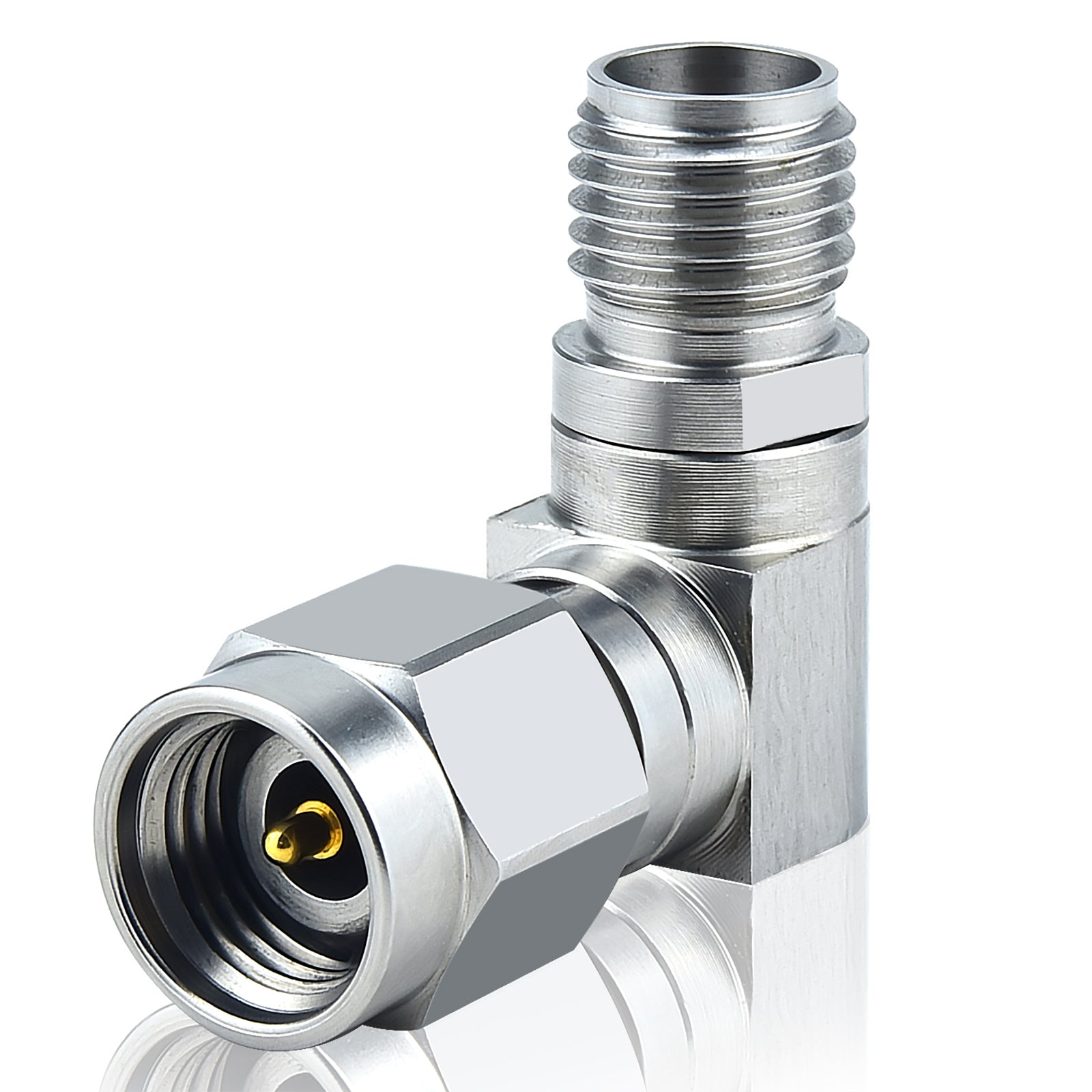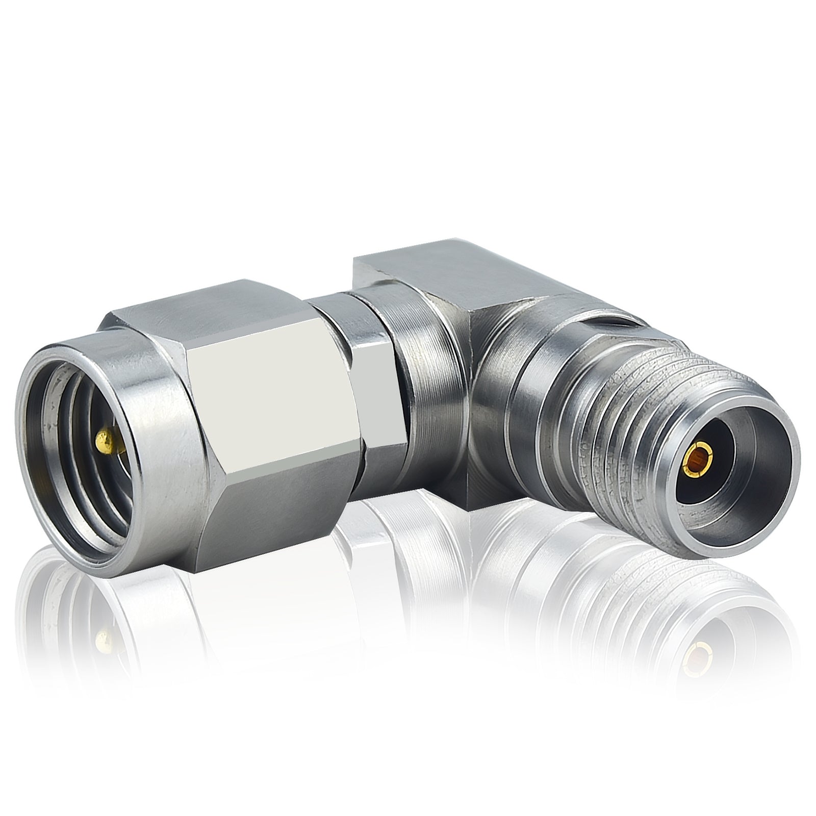 2.92 mm Wave Connector Precision 2.92 mm Male to 2.92 mm Female Right Angle Adapter Stainless Steel Body Microwave Adapter, 50 Ohm,DC to 40 GHz, VSWR 1:1.2
