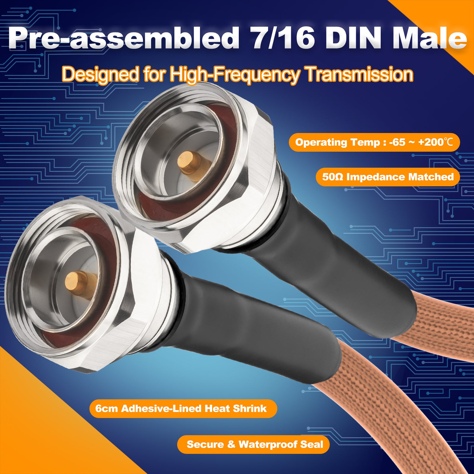 - Precision & Reliability : Pre-assembled 7/16 DIN male-to-male jumper, exact RF Cable for accurate internal wiring; gold-plated contacts provide low contact resistance and ≥1 000 mating cycles.