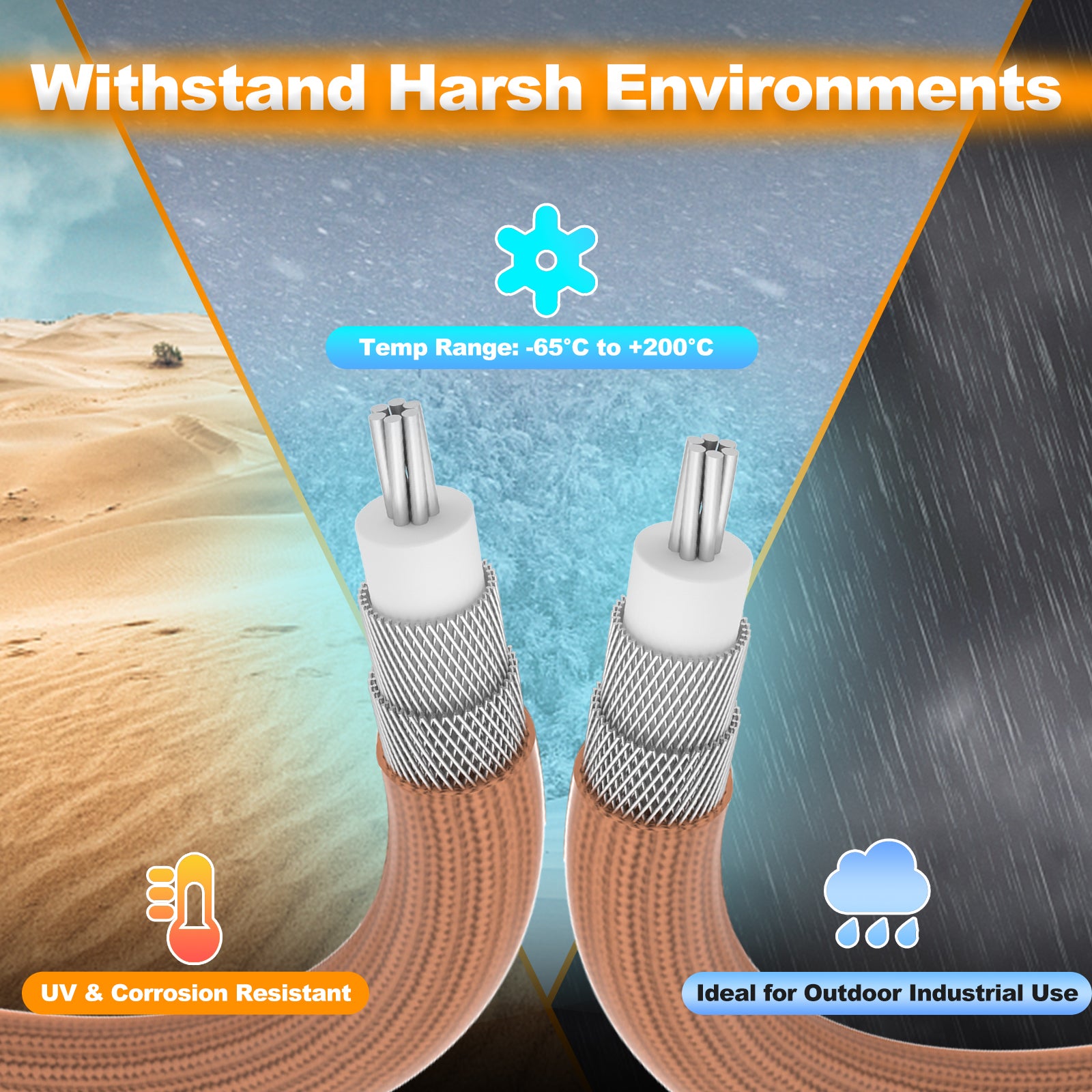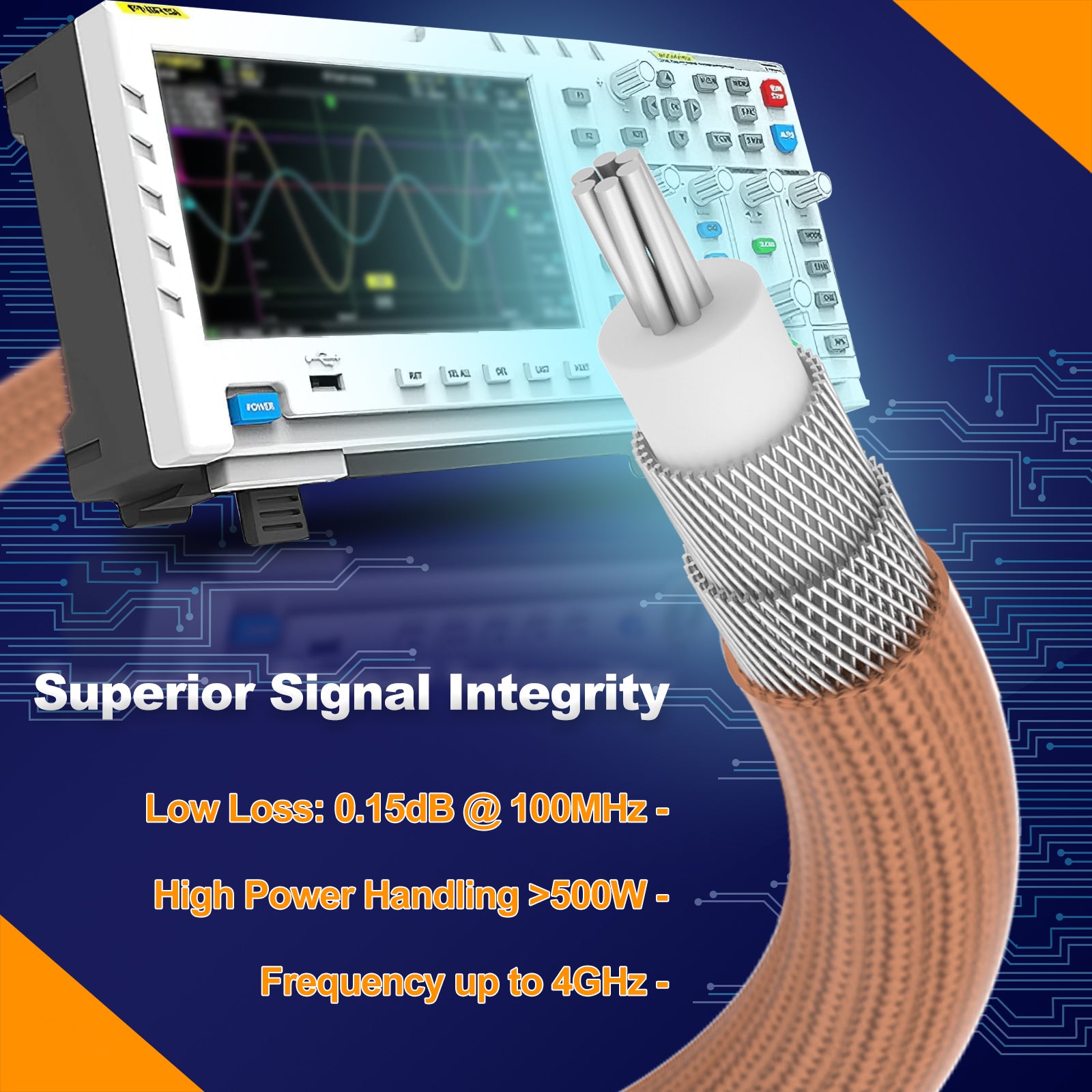 - PREMIUM HIGH-TEMP MATERIALS: Constructed with a Silver-Plated Copper (SC) Inner Conductor for better high-frequency conductivity, PTFE (Polytetrafluoroethylene) insulation for impedance stability, and a durable Brown FEP Jacket resistant to chemical corrosion and high temperatures(+150℃).