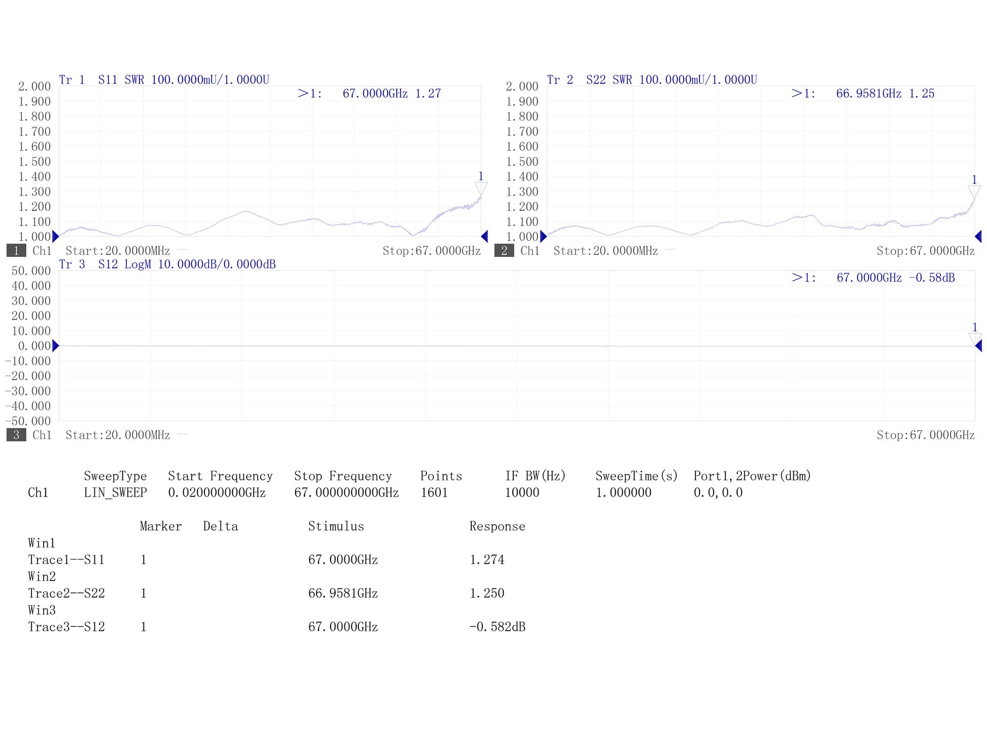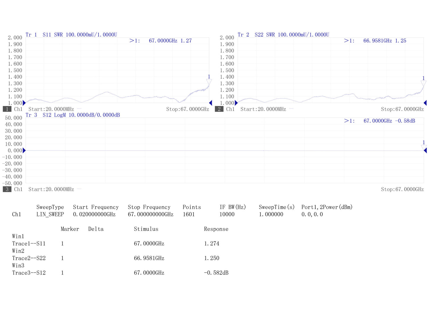 - 1.85 mm Male to 1.85 mm Male type Adapter; Material : Body :Stainless Steel(Passivated,High-frequency millimeter-wave test connectors made of stainless steel), Pin : Berylllium Copper(Gold plated), Impedance : 50 Ohm, Frequency: DC to 67 GHz, VSWR : 1:1.25