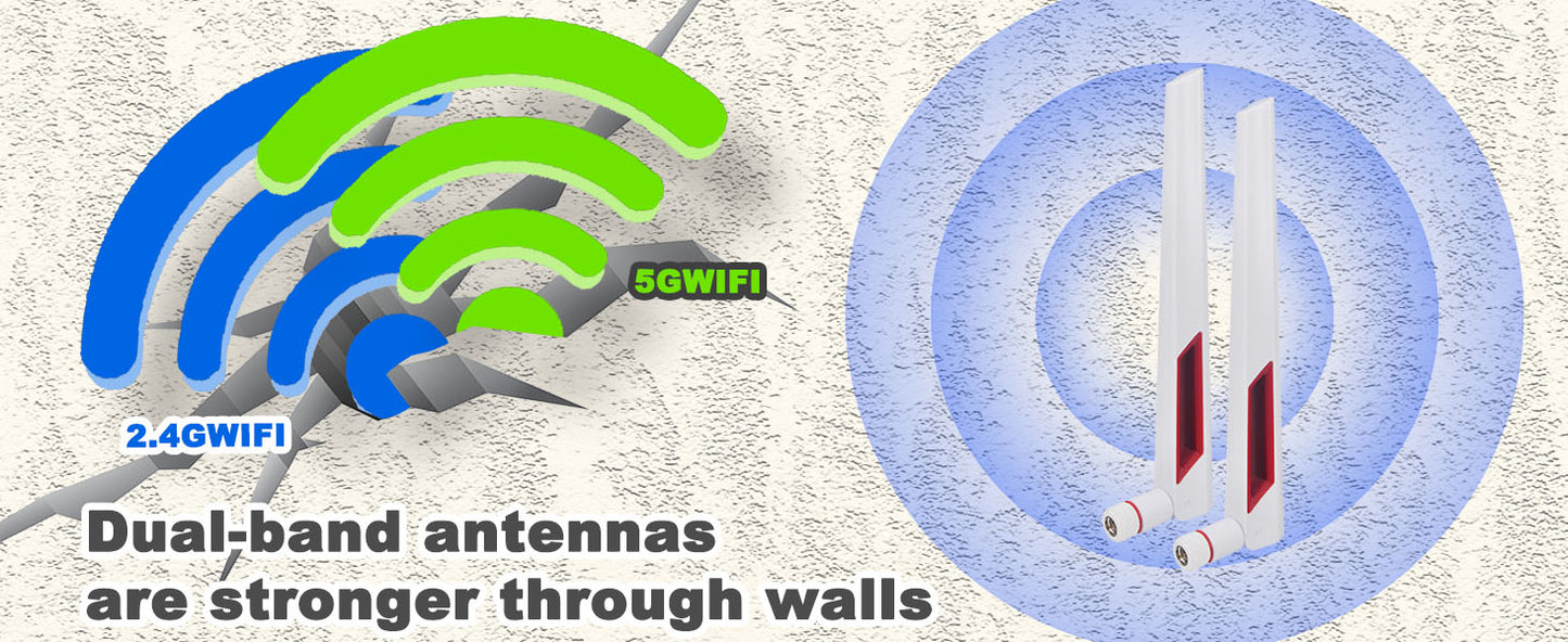 • High gain dual-band antenna compatible with: Wireless Network Router, WiFi AP Hotspot Modem, WiFi USB Adapter, WiFi module, WiFi Wireless HDMI Extender, Receiver Transmitter, Desktop PC Wireless Mini PCI Express PCIE Network antenna Adapter;