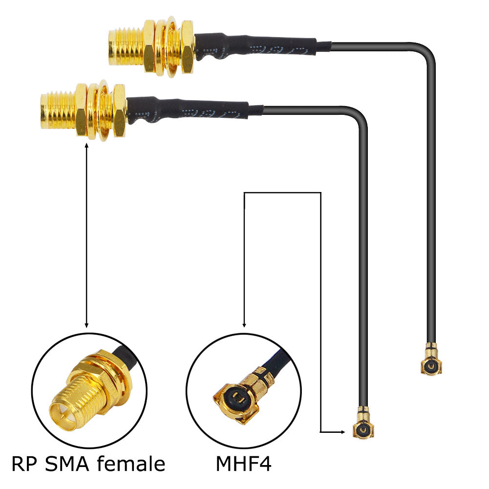 - Package Content : 2 x RP SMA to Ipx cable (Make sure you are familiar with your connectors before buying, As stated in the listing MHF4 will NOT work for Mini PCIe Wireless Card. They are for NGFF Wireless Card known as MHF4 only.)