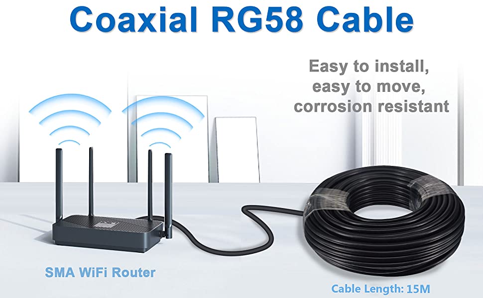 - Ultra Low-Loss - The outer material of this rg58 coax cable 50 Ohm is made of flexible waterproof PVC jacket which can be used so long in harsh outdoor environments.It could be bend and strapped without inducing signal interference.Ultra Extension Wifi Cable for antenna,Made with quality, low-loss RG58, which means far less attenuation than cables made from thin RG316 or RG174. Don't settle for less especially if you have a significant investment in antennas
