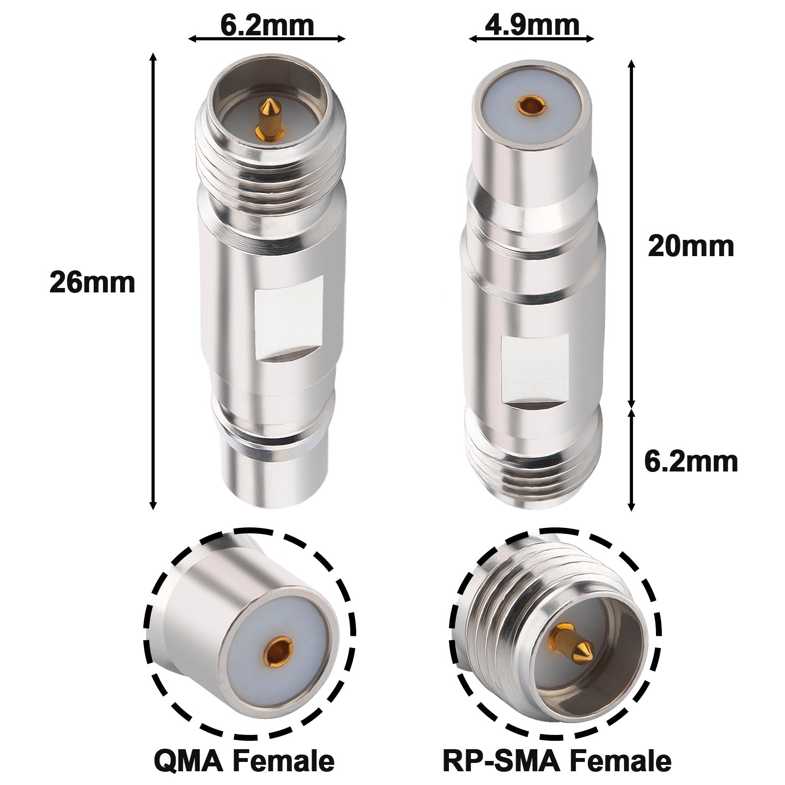 - 6GHz High-Frequency Support – RP SMA Female to QMA Female,Low VSWR (≤1.15) and insertion loss (≤0.15dB) for 5G mmWave, Starlink terminals, and satellite communications.