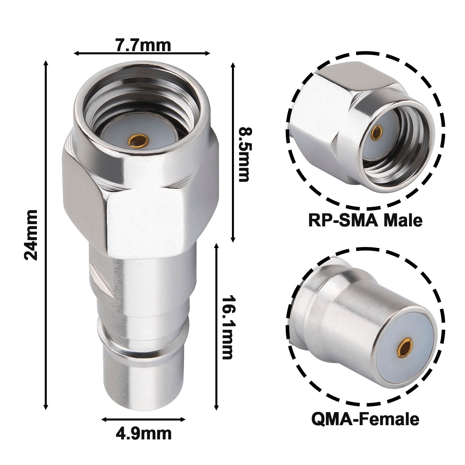 - 6GHz High-Frequency Support – RP SMA male to QMA female Adapter,Low VSWR (≤1.15) and insertion loss (≤0.15dB) for 5G mmWave, Starlink terminals, and satellite communications.