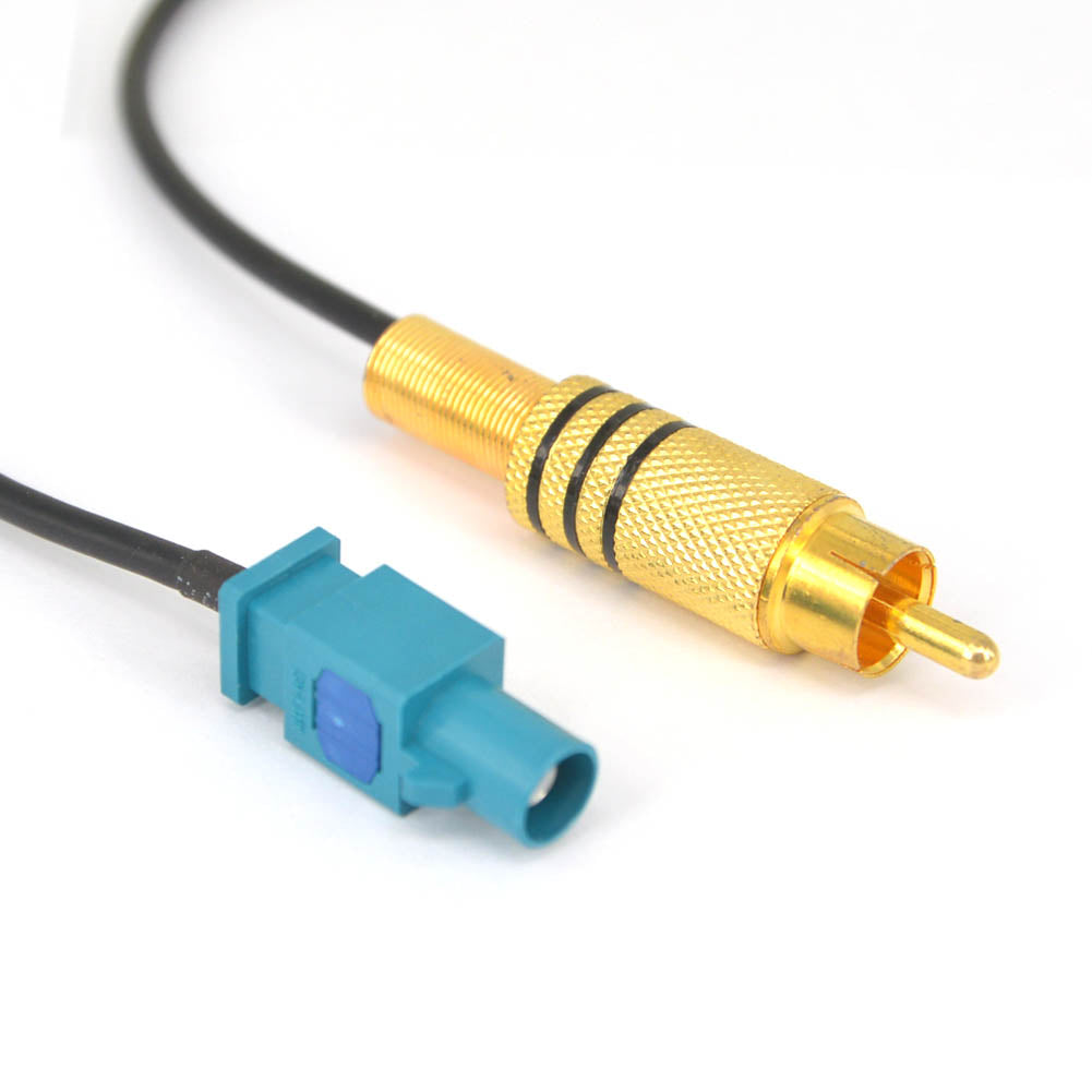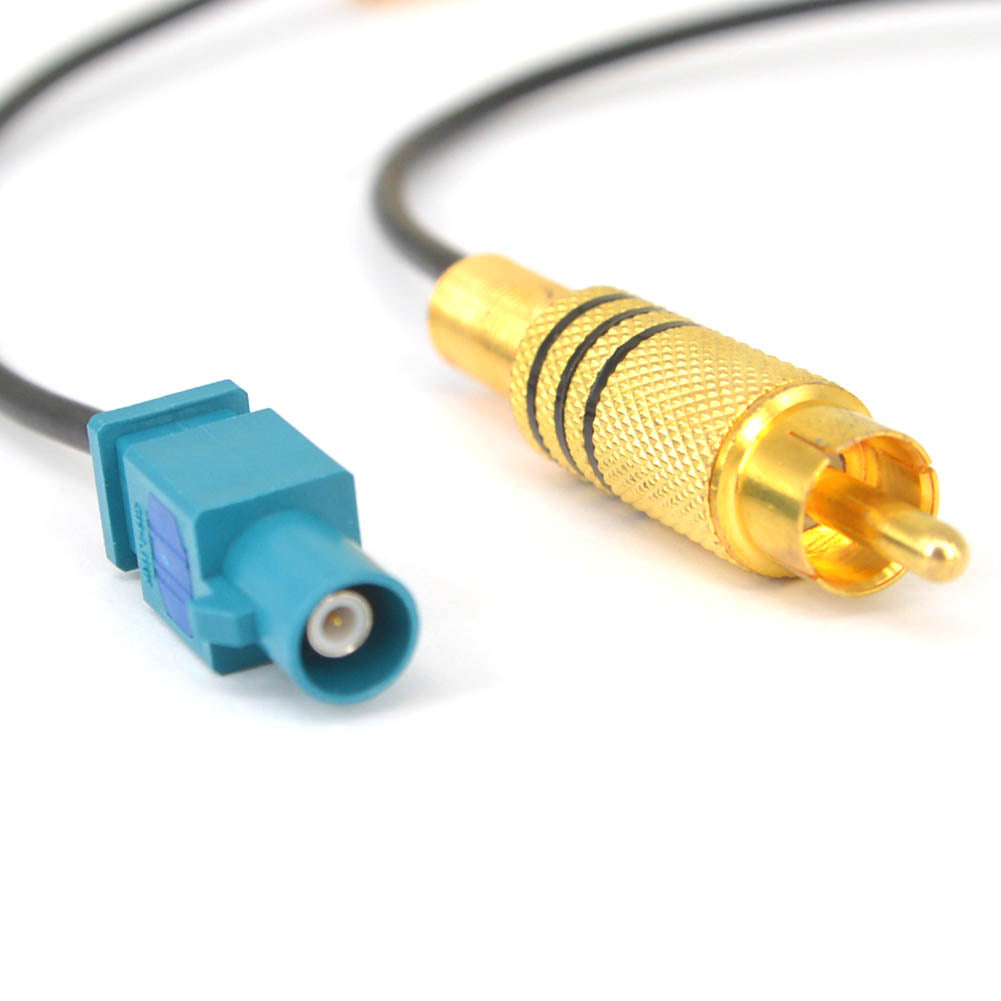 This fakra to rca adapter cable connects the video signal to the navigation unit and connects to the video input on the Fakra socket. The terminal provides video signal through the FAKRA entrance