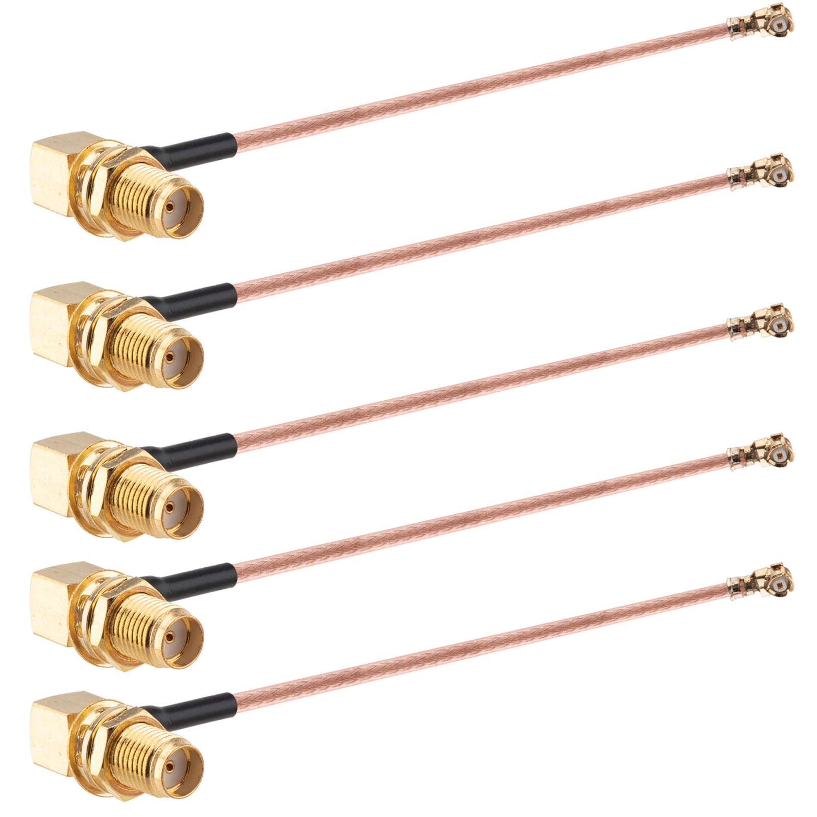 onelinkmore RG178 UFL SMA Coaxial Cable, UFL MHF1 to SMA Female Right Angle Pigtail Jumper Coax Low Loss Extension Cable for Wi-Fi Radios, Antenna, Mini PCI Pack of 5